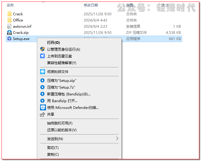 解压Office2024压缩包,选中“Setup”应用程序,右键“以管理员身份运行”