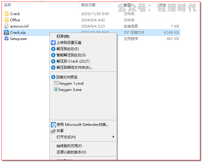 选中“Crack”压缩包,右键解压