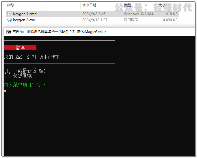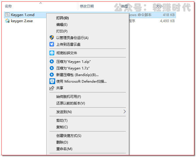 选中“Keygen 1”,右键“以管理员身份运行”