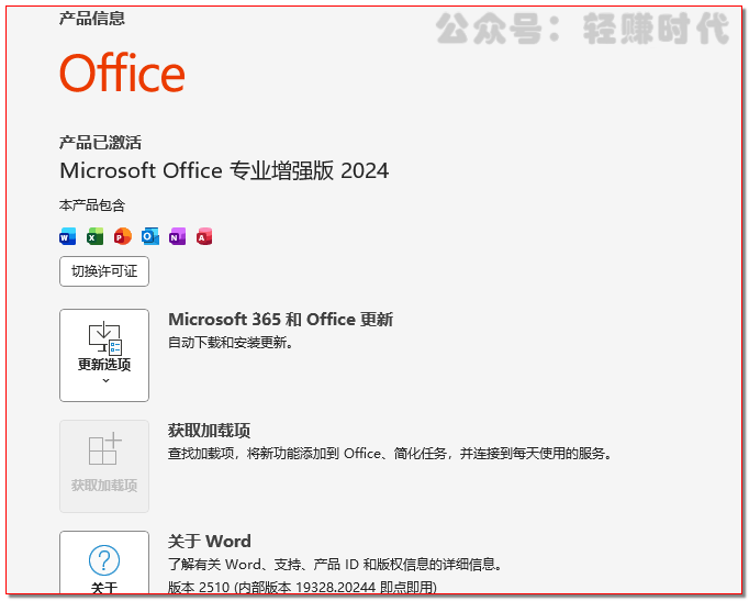 查看Office 2024许可状态,产品已激活