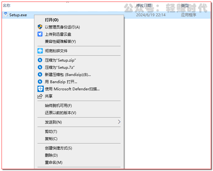 选中“Setup”应用程序,右键“以管理员身份运行”