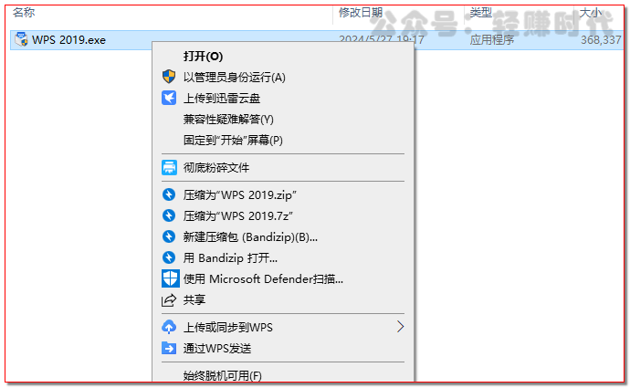 选中WPS 2019安装程序,右键“以管理员身份运行”