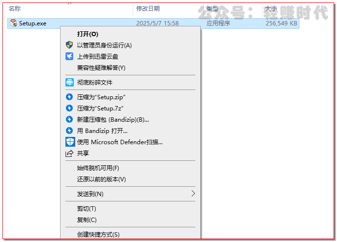 选中“Setup”应用程序,右键“以管理员身份运行”