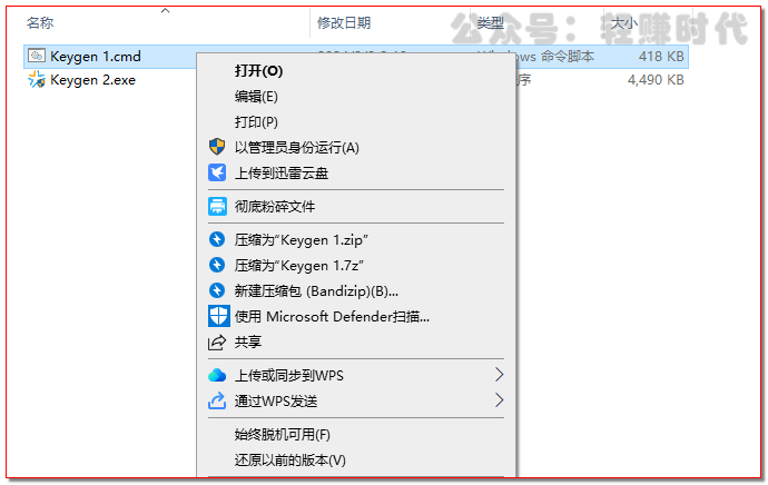 两种激活方式均可,如选中Keygen 1,右键“以管理员身份运行”