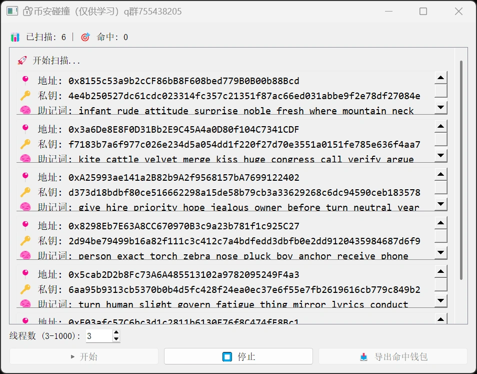 • 有的作为空投有的上架一级市场二级市场,所以这种钱包特别多,通过脚本进行多线程碰撞,达到比较大的收益。